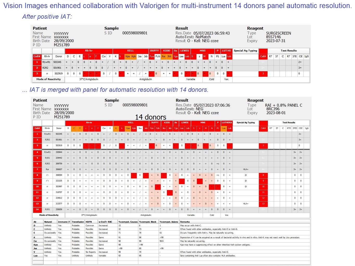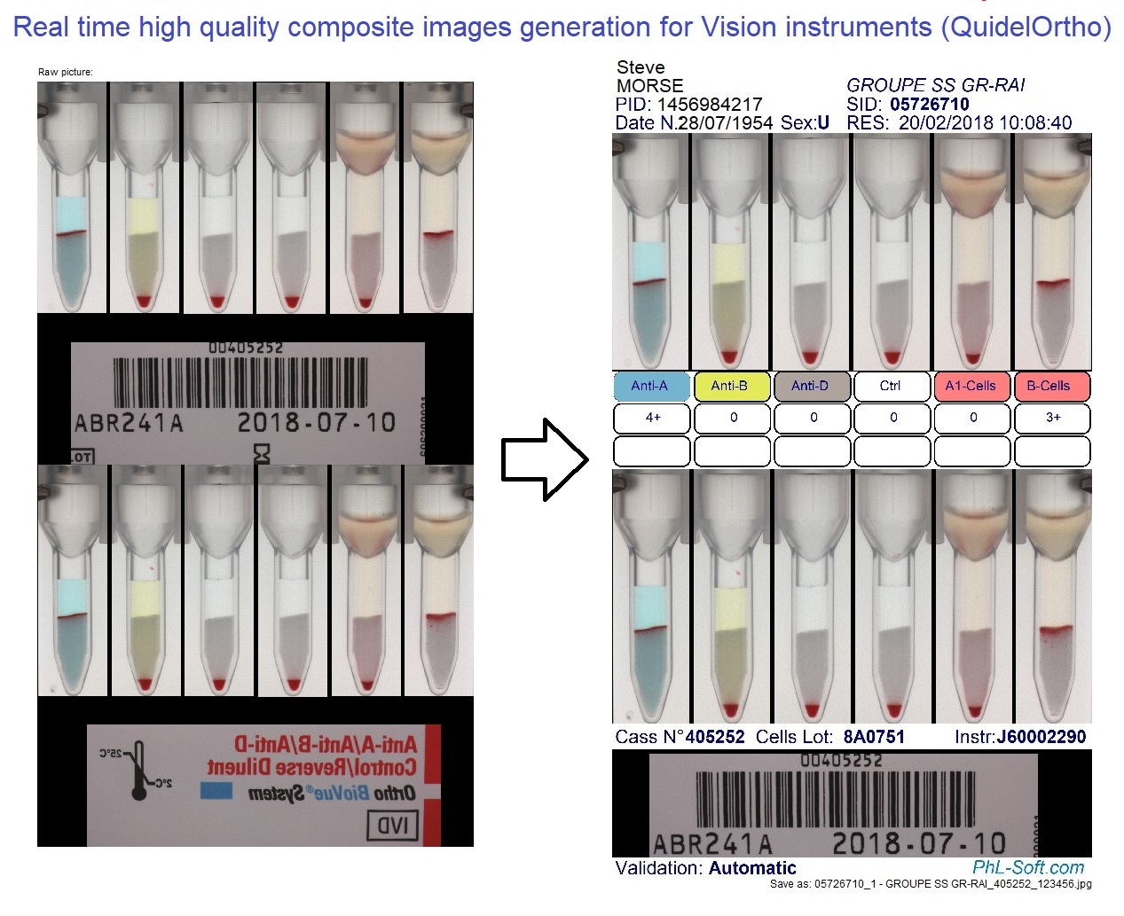 Vision Images automatically transforms immunohematology test results into clear, comprehensive, and immediately usable composite images, without any user intervention.