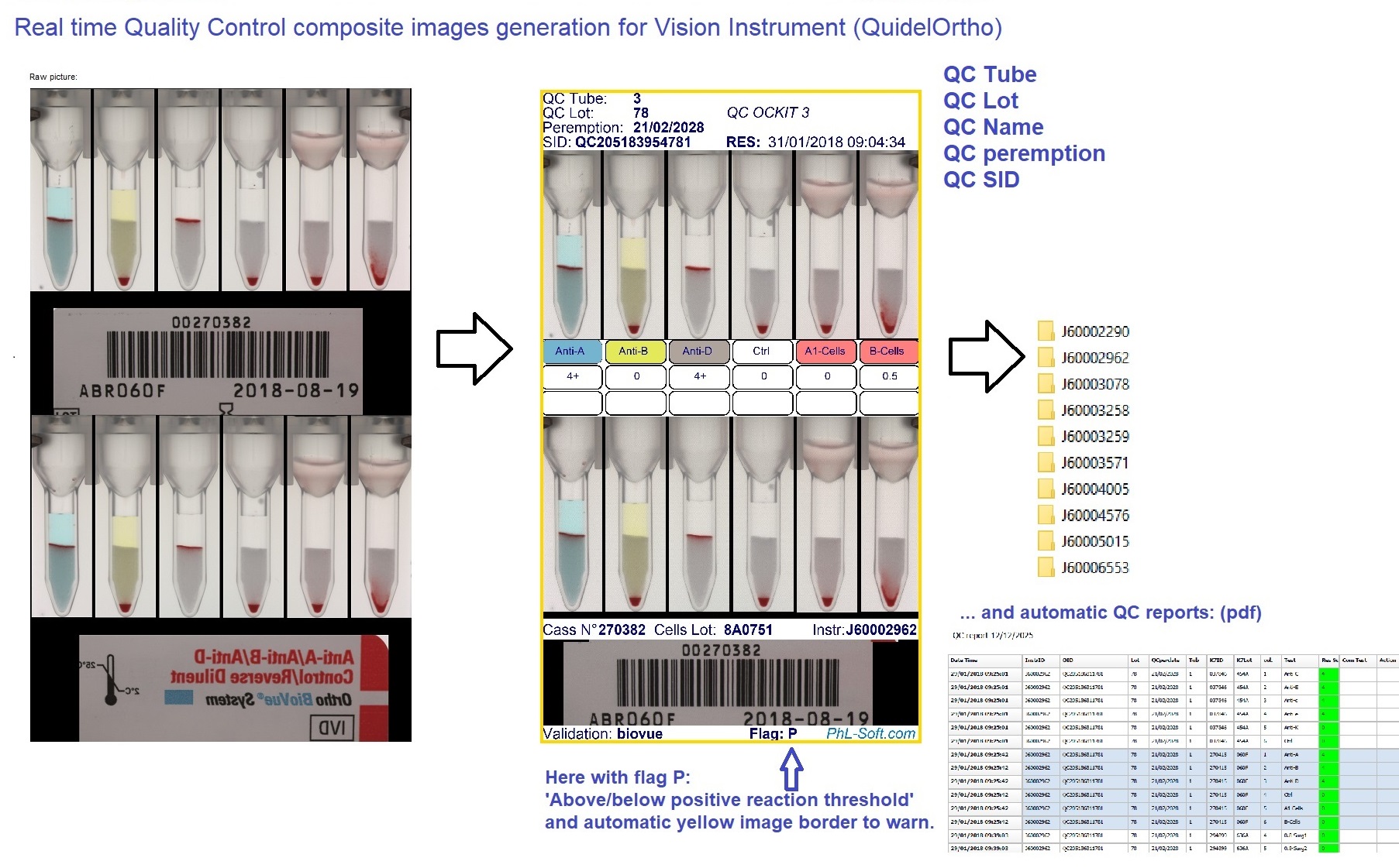 Lightweight, long-term archiving of result and QC images, automatic generation of QC PDF reports, and preservation of all critical information to support audits and accreditation processes.