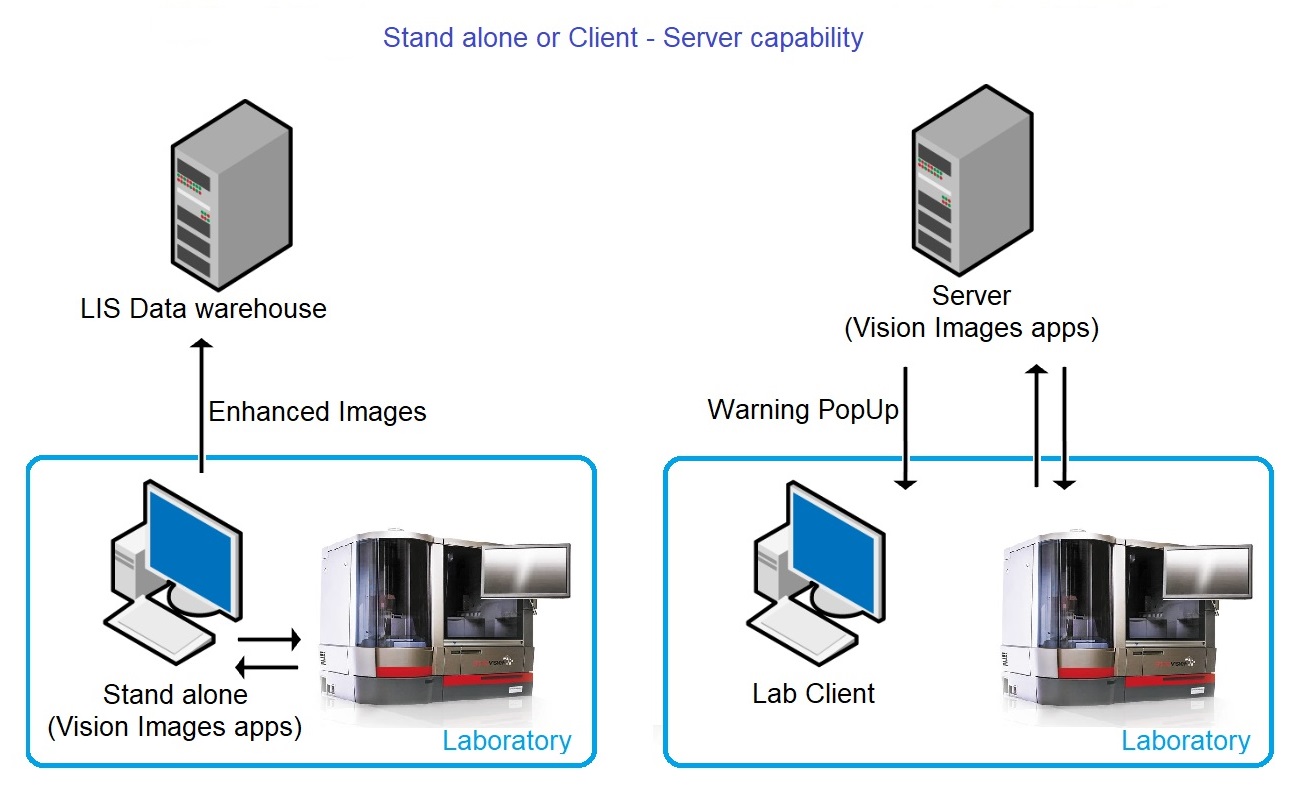 Background operation on the laboratory network, with no impact on analyzers or Vision workstations.