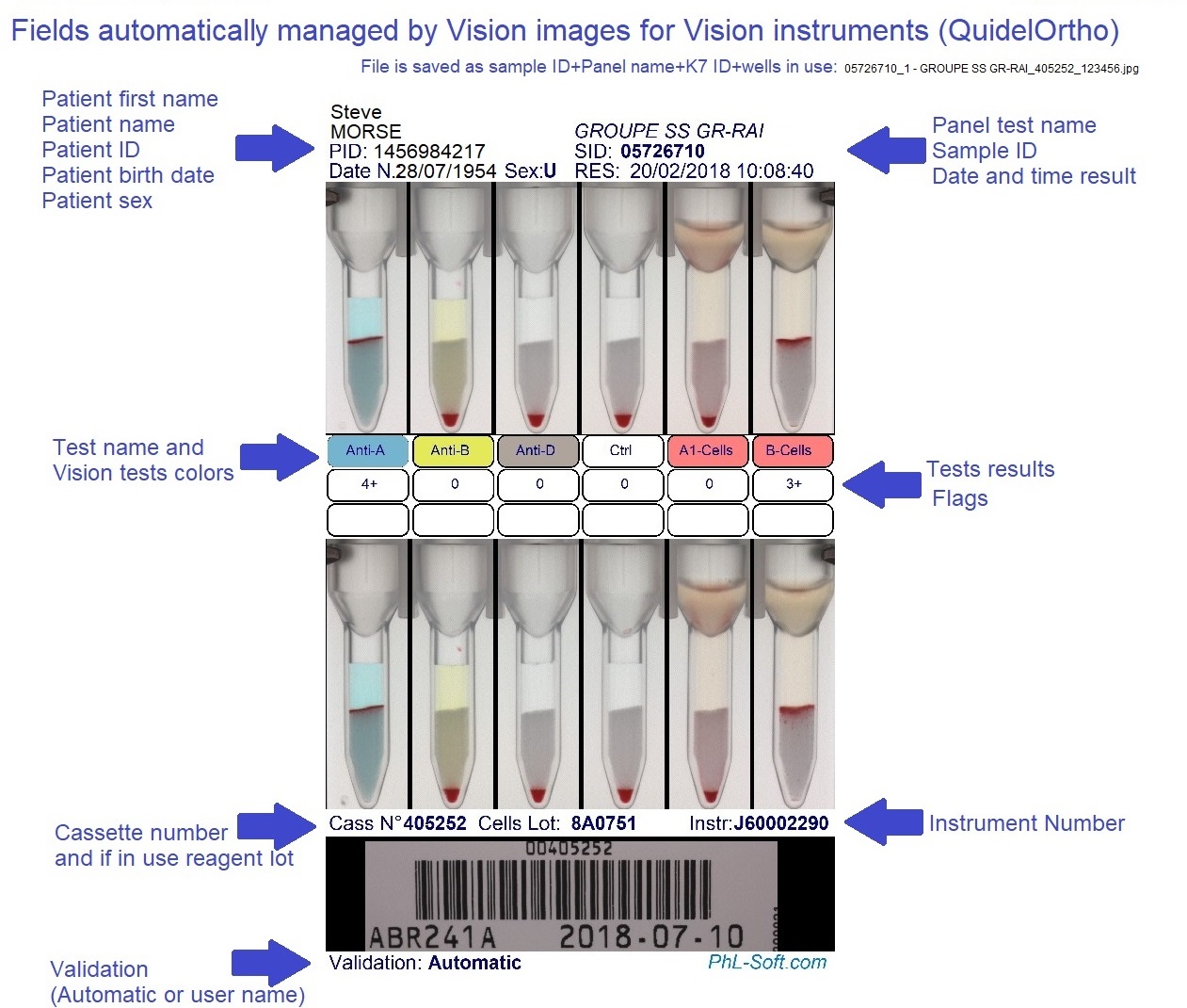 Vision Images automatically transforms immunohematology test results into clear, comprehensive, and immediately usable composite images, without any user intervention.