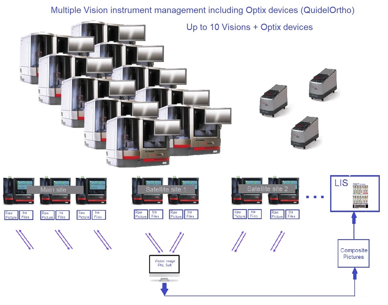 Management of up to 10 Vision™ instruments using a single software instance, including the Optix™ instrument.