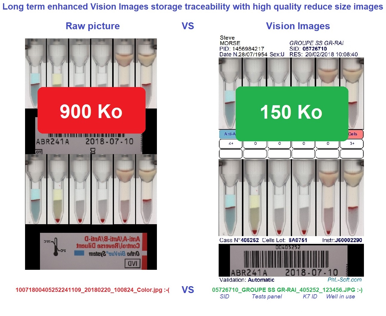 Vision Images secures, simplifies, and documents the critical step of immunohematology result validation by providing biologists with a reliable, immediate, and durable visual record of results and clinical decisions.
